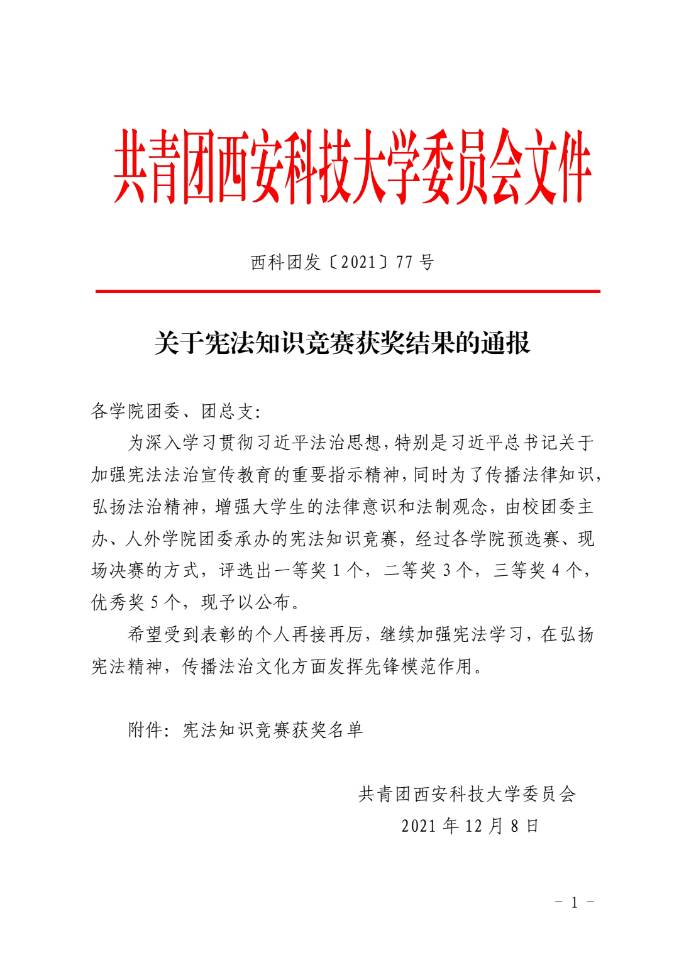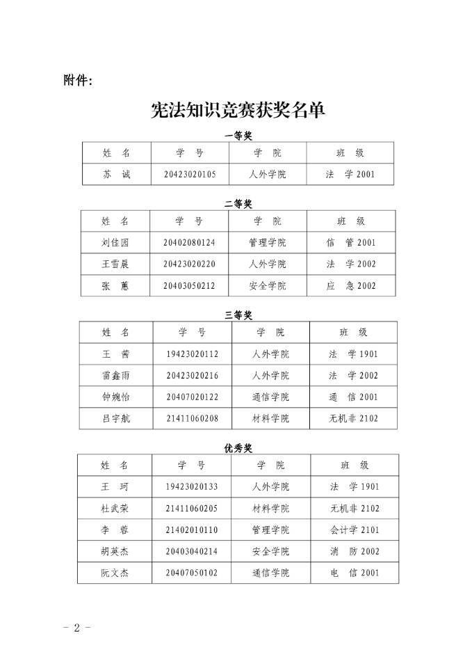 宪法是我国的根本大法,为了传播法律知识,弘扬法治精神,增强大学生的法律意识和法制观念,开云kaiyun体育团委承办了宪法知识竞赛,同学们踊跃参加,收获颇丰。现将比赛结果公示如下: