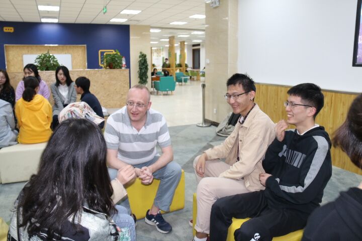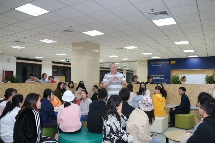 外教James与到场的同学倾心交流,为同学们带来了一份丰盛的英式文化大餐。老师从节日入手,细致的为同学们分析了中外节日差别,使与会同学对中西“节日文化”的差异有了初步的认识。在接下来的自由讨论过程中,同学们各抒己见,思维在碰撞中激荡出了灵感的火花,为春日的校园带来了一抹喜人的亮色。而开云官网师生交流中幽默诙谐的语言、风趣得体的表达,不时撩起闻讯而来的同学们一片欢声笑语。