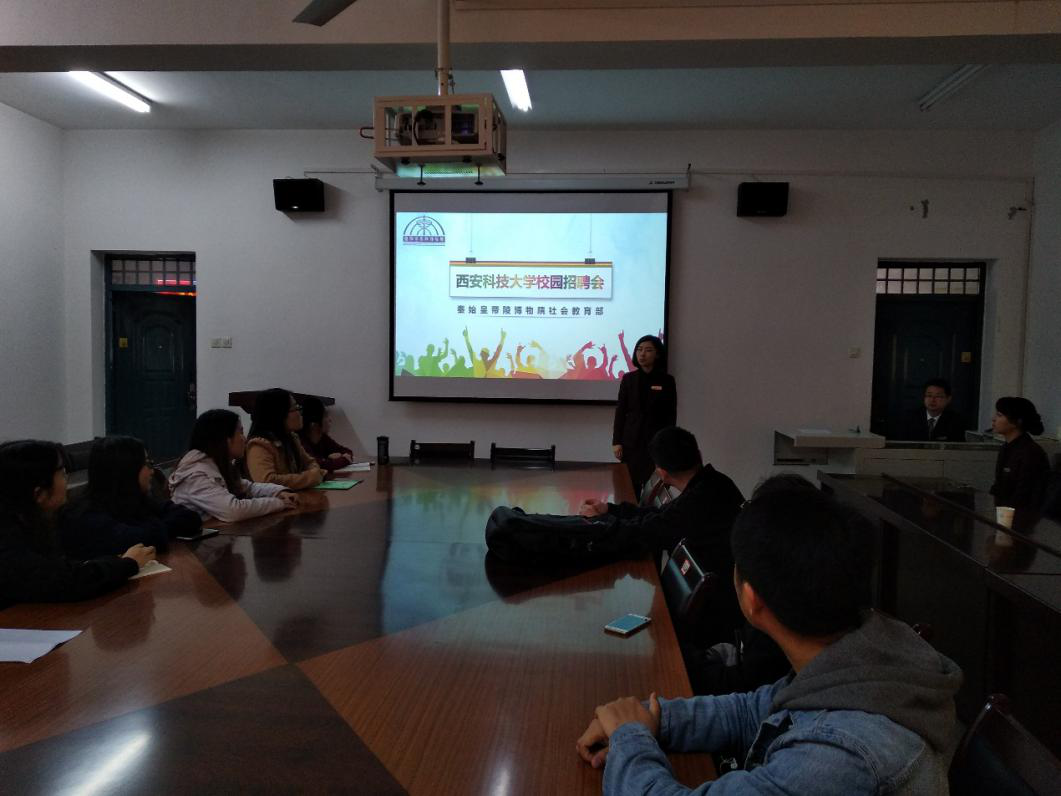 3月20日上午,秦始皇帝陵博物院社会教育部开云kaiyun体育校园招聘会在开云kaiyun体育会议室举行。社会教育部农主任简要介绍了秦始皇帝陵博物院以及社会教育部的概况、招聘岗位、应聘条件以及福利待遇等,部门业务骨干开云官网16届毕业生齐文静给学弟学妹们分享了她从在校期间去博物院实习到现在已经成长为业务骨干的成长经历,另一名博物院工作人员也分享了他8年的工作经历和感悟。随后,农主任对学生咨询的问题进行解答。在招聘会上,部分毕业生达成就业意向。会后,开云官网14级辅导员李银亮与用人单位进行了沟通和交流,希望进一步加强就业合作。