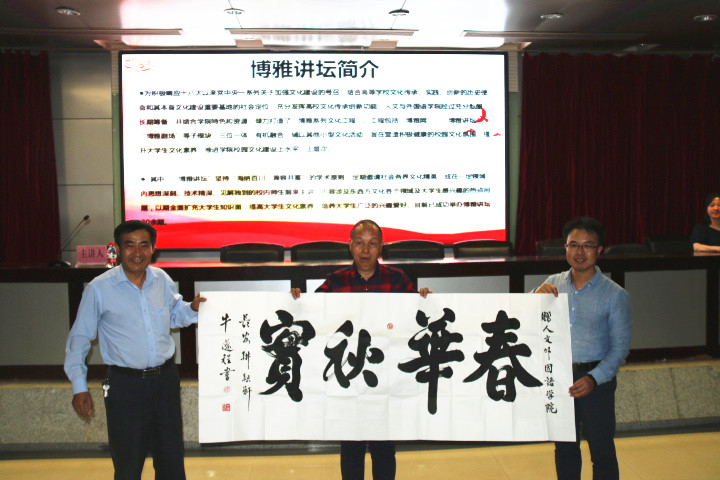 5月31日晚,开云kaiyun体育系列校庆报告会暨博雅讲坛第29讲在骊山校园图书馆报告厅举行。著名书法家牛迈程应邀作了题为“我心目中的西科大”的报告。学院党委书记苏陆岭、党委副书记张振中及200余名师生聆听了报告,学院团委书记张晶晶主持报告会。