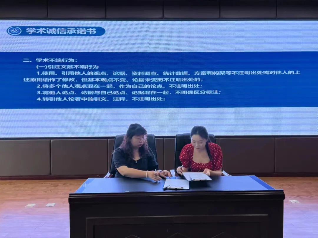 会上,费秀水为2023级学生军训教官颁发聘书。导师代表张辉、2023级研究生代表杨皓月,代表全体研究生导师和研究生进行研究生学术诚信签约。