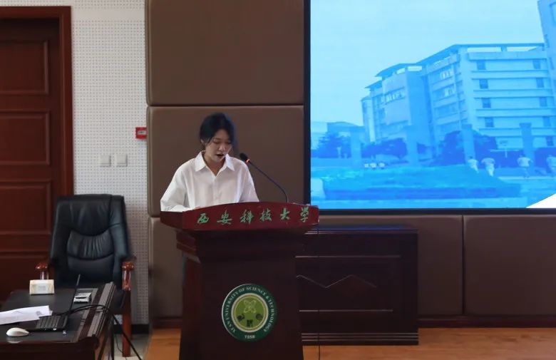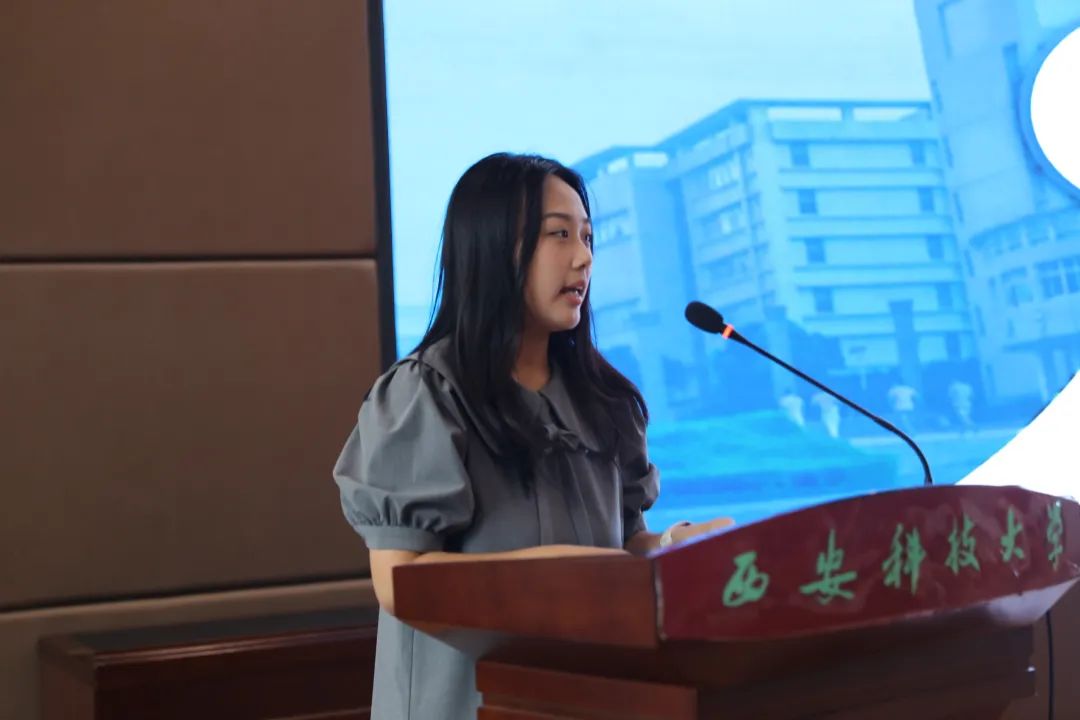 何晗钰在发言中表示,学院卓越的师资力量和浓厚的学习氛围鼓舞她继续学习深造,并期望自己和同学共成长,在未来三年锤炼自身本领,争做“有理想,敢担当,能吃苦,肯奋斗”的新时代好青年。