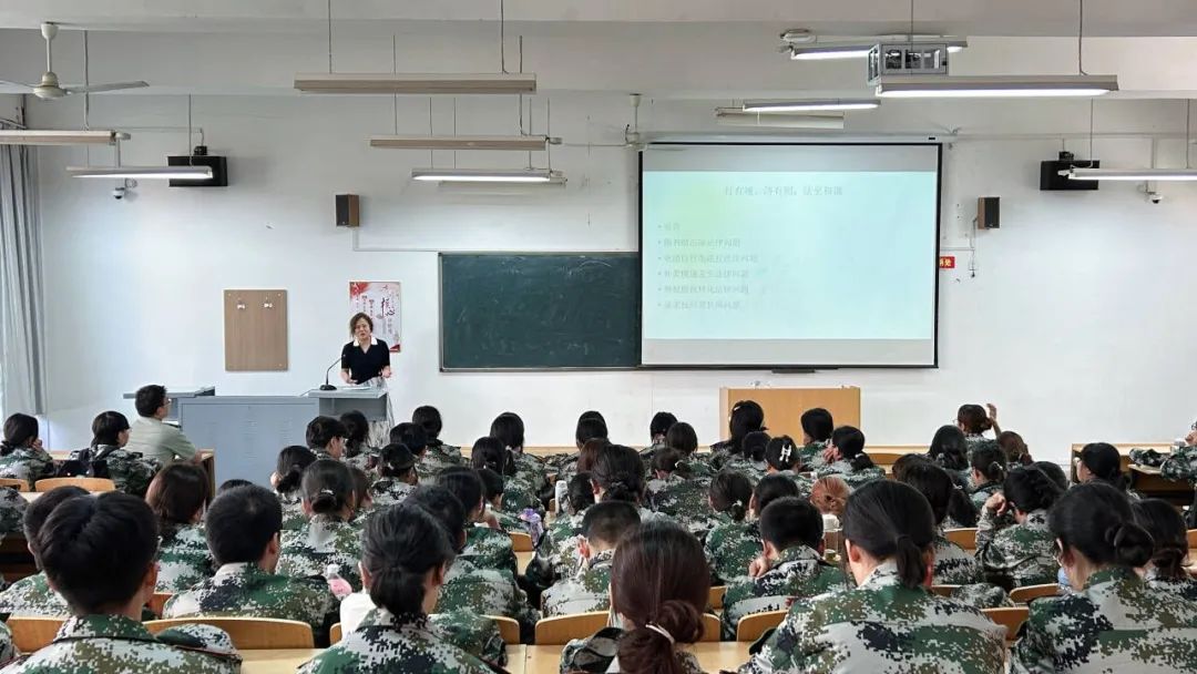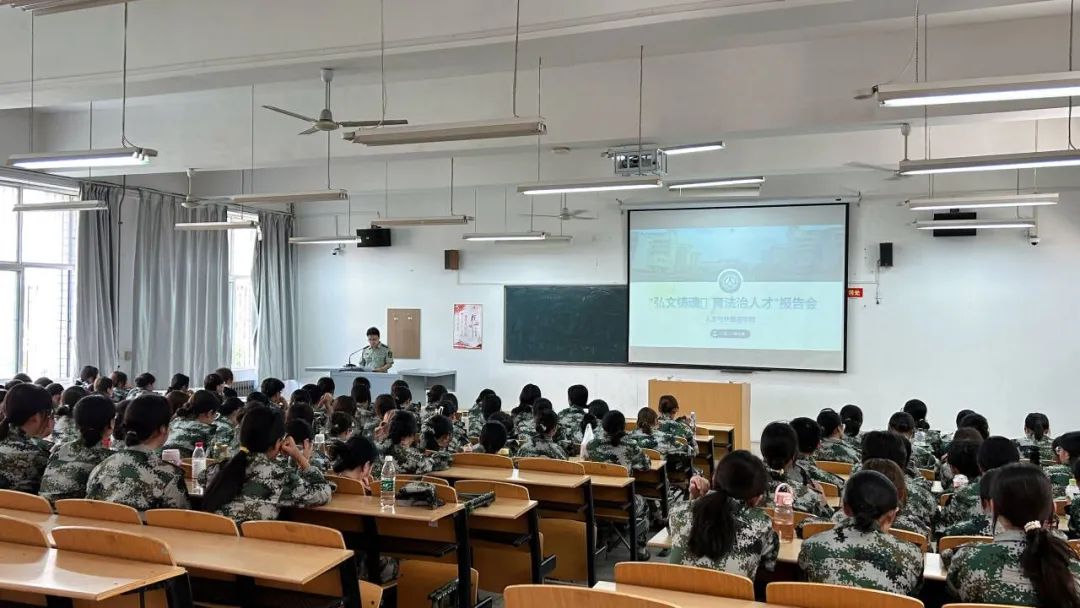 为深入学习贯彻宣传习近平法治思想,坚定学生理想信念,提高政治站位和法治素养,加深专业认知,营造和谐法治校园环境,9月13日上午开云kaiyun体育组织23级新生参加“弘文铸魂•育法治人才”专题讲座,十四营指导员李银亮主持。