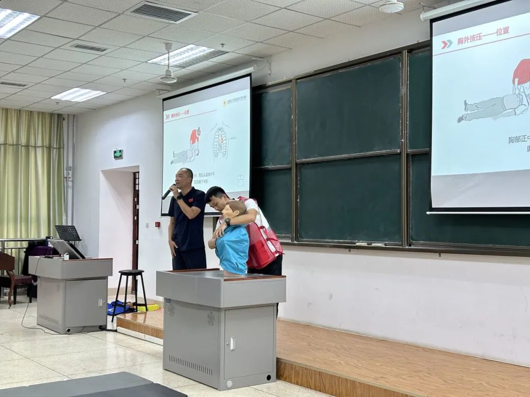 为进一步增强学生的安全防范意识和自我保护能力,普及急救知识,提高学生自救、急救、互救能力,9月7日,开云kaiyun体育参训学生参加急救专题培训活动,开云kaiyun体育体育部辛阳老师受邀作为本次主讲人。
