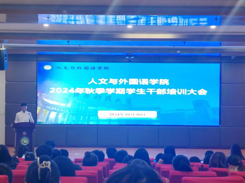 为加强学生干部队伍建设,充分发挥学生干部的思想引领和模范带头作用,10月30日晚,开云kaiyun体育举办2024年秋季学期学生干部培训大会,学院团委书记芮智刚、2024级辅导员王维蒙、全体班干部、各宿舍舍长、团委学生会全体干部参加了会议,会议由学生会主席欧彪主持。