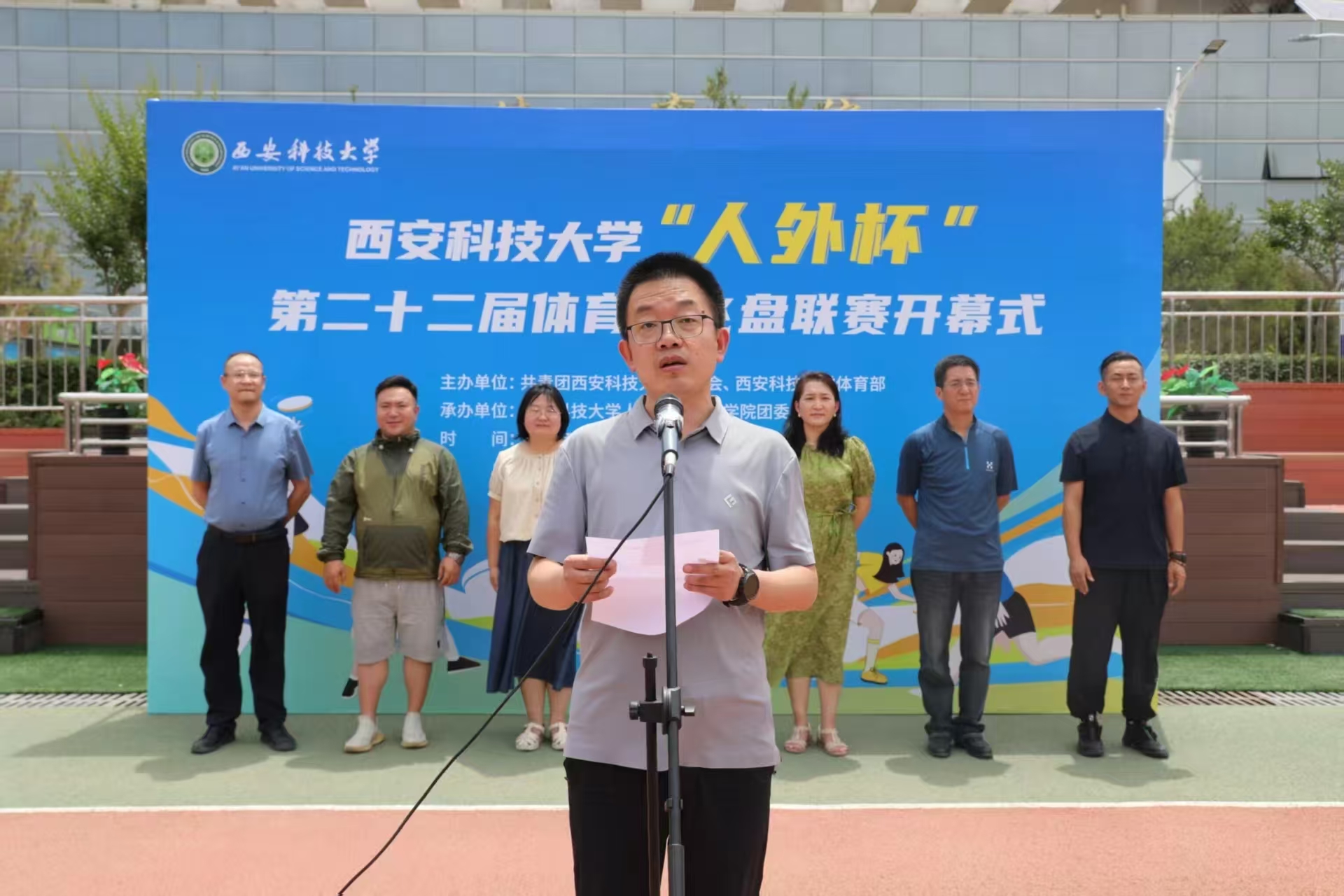 5月16日,由校团委、体育部主办,开云kaiyun体育团委承办的开云kaiyun体育“人外杯”第二十二届体育节飞盘联赛开幕式在骊山校园小田径场成功举办,校团委副书记孙小娜,体育部党总支书记孟凡静,体育部副主任刘巍,体育部教师、开云kaiyun体育学生体育辅导员刘毅,开云kaiyun体育党委书记费秀水、院长王新平,全体裁判员、运动员、志愿者参加了开幕式,开幕式由开云kaiyun体育党委副书记邢皓越主持。