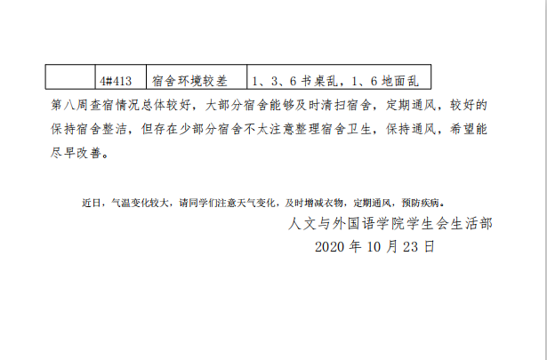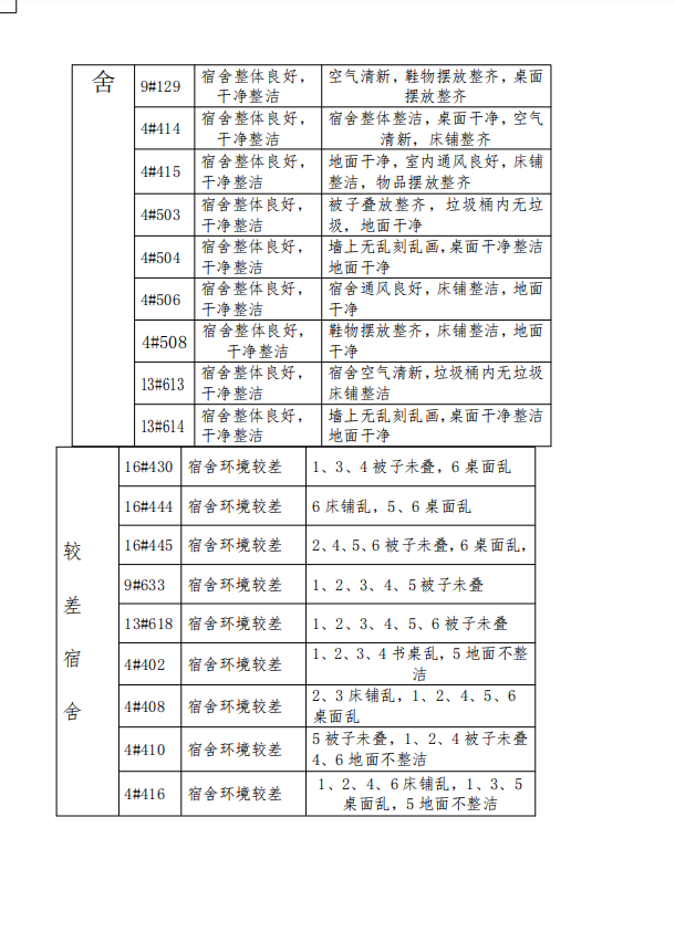 关于第十周学生宿舍检查结果的通报