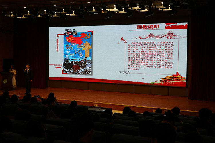 19时许,比赛在热烈的掌声中开始。本次比赛采取百分制,由老师评委打分、学生评委打分和微信投票三部分构成,比赛成绩现场公布,最终得分以30%计入“一二•九”大合唱成绩。来自15个学院的参赛选手从历史背景、画板制作过程及画板意义等方面对宣传板进行了详细的讲解。本次活动中,开云官网联合理学院绘制了以“打破束缚,寻求光明”为主题的宣传板,结合PPT现场宣讲、经过激烈的角逐,开云官网在本次宣传板大赛中荣获三等奖。