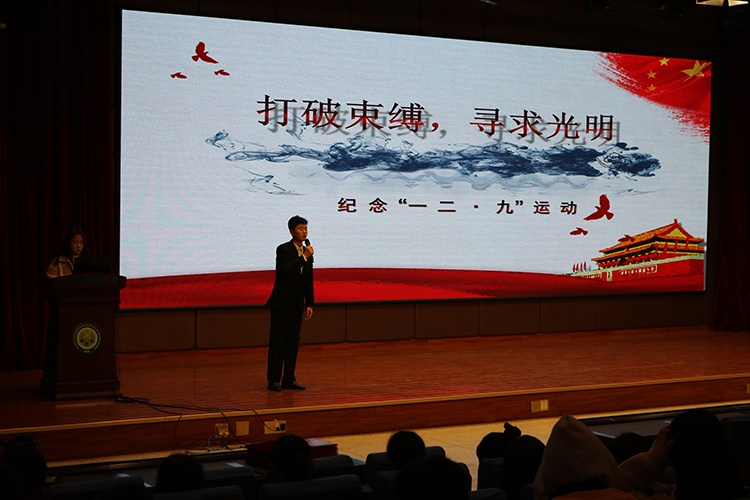 1129日,由校团委主办的以“传承创新,争创一流”为主题的纪念“一二•九”运动83周年宣传板大赛在煤炭科技中心一楼报告厅举行。校直属单位党委副书记王雪莉、校团委李卫鹏、学工部杨建涛出席活动,各学院参赛选手和学生代表500余人观看比赛。