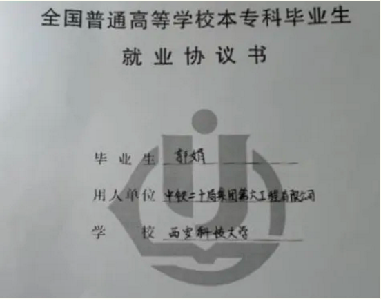 九月底,郭娟签下了中铁二十局。公司的总部是她的意向地西安,工作内容是她熟悉的党团工作。她笑着说道面试那天的一切都刚刚好。乖巧站在面试队伍中,认真的回答HR的问题。回想那天的趣事时,她聊到前面被面试的女生挂过科,HR在面试那个女生的时候,突然看向她说有没有挂过科。还在做心理准备的郭娟就这样被推上了面试的位置,懵懵地只说了两个字,“没有”。在旁边的朋友替她补充说:不仅没挂过科,还拿过奖学金。短短的几秒辅助时间,给了郭娟重回状态的准备,之后的自我介绍和回答问题就格外得心应手些。