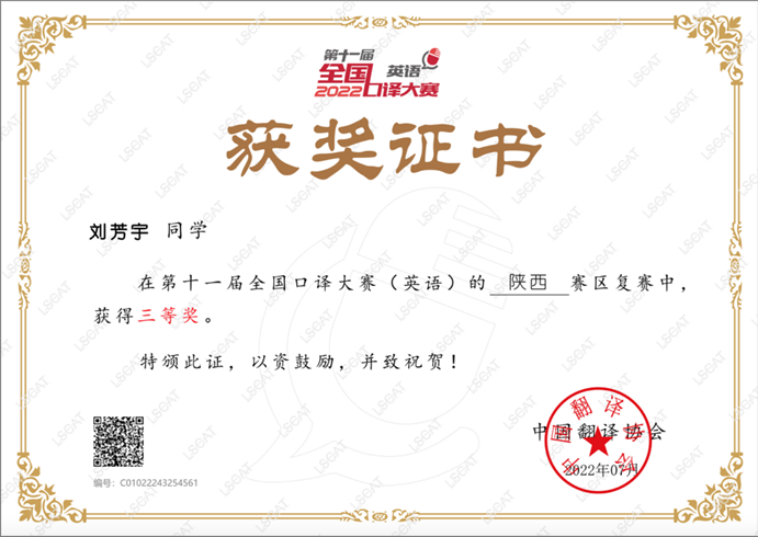 此次大赛由中国外文局指导、中国翻译协会主办,中国翻译协会语言服务行业创新创业中心及北京甲申同文翻译有限公司承办。本次大赛形式为英汉、汉英交替传译,比赛内容涵盖时事热点及新闻。开云官网参赛选手杨皓月、张新婧、刘芳宇三位同学顺利分别以陕西省第26名、32名和80名的好成绩晋级大区赛,并获得陕西赛区二等奖2项、三等奖1项。