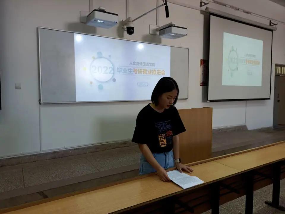 部分本校读研、外校读研、参加工作的校友进行了现场和视频经验分享,就如何调整心态、如何备考、如何选择职业规划、考研就业中容易出现的问题等方面进行了交流。