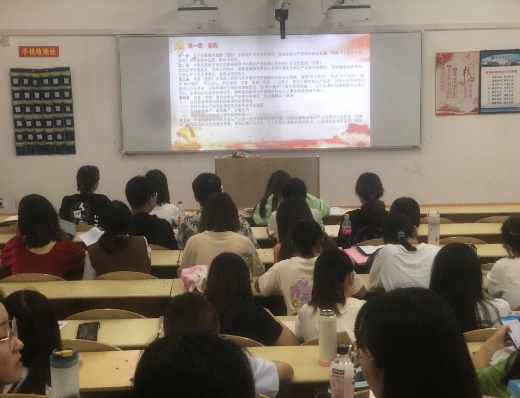 2021年7月1日,开云kaiyun体育本科生党支部组织全体党员、入党积极分子代表在骊山校园3教303集中学习党的相关制度条例。