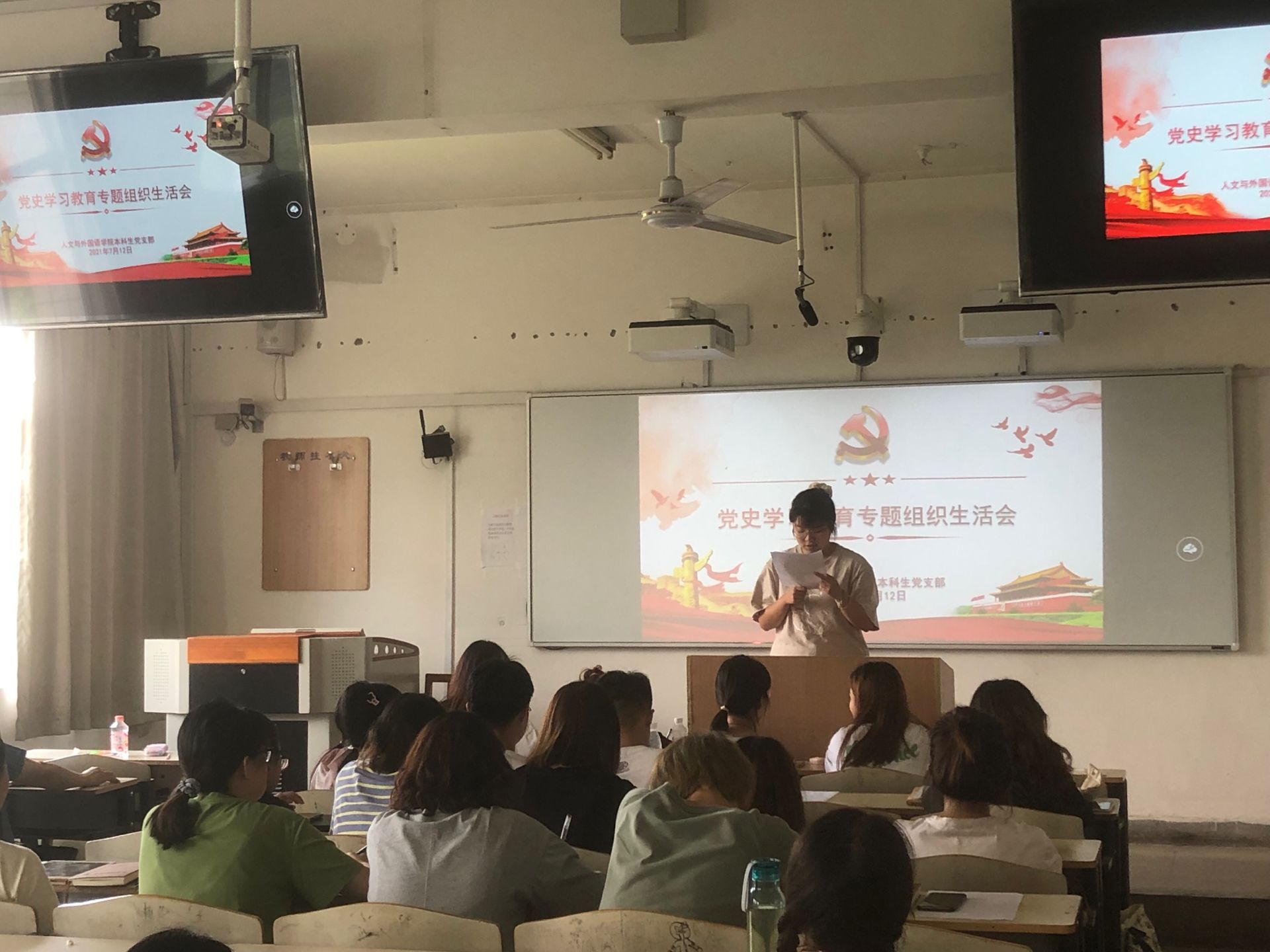 7月12日,开云kaiyun体育本科生党支部组织开展党史学习教育专题组织生活会,会议由本科生党支部书记李银亮主持,党委副书记张振中、全体党员、入党积极分子代表参加会议。