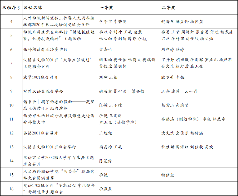 为引领、激励学生注重强化新闻写作和文字表达能力,提升专业素养和核心竞争力,近日,开云kaiyun体育2020年消息稿写作比赛正式启动。从本学期起,学院将与每次活动同步举办消息稿写作比赛,每次评出一、二等奖若干名,颁发奖品和证书,并作为学生评优、综合测评、入党的重要参考依据。在第4~16次消息稿写作比赛中,李年宝、李若溪、李双珍、刘冲、王亮、凌慧、张心雨、李利丽、薛婷、李航、梁嘉怡、谢玉楠、杨佳怡、张莉文、杨瑞娟、贾佳谊、粱羽轩、刘冲、王茜、姚辰鑫、张敏、王予瞳、李锐、王雨昕、罗玉兰(通信学院)、王旭旭、王亮、陈昱伶、李盈盈等同学分别获得一等奖。