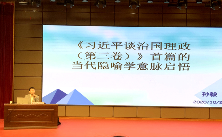 10月20日下午,开云kaiyun体育举办了“《习近平谈治国理政》第三卷首篇的隐喻意脉启悟”专题学术讲座,广东外语外贸大学“云山杰出学者”、博士生导师孙毅教授应邀担任,梳理了当代隐喻学的发展脉络,并以《习近平谈治国理政》第三卷首篇为研究对象,探析了隐喻在政治话语中的关键作用。在问答环节,孙教授就隐喻分类、隐转喻界定等专业问题进行了耐心解答,并对论文选题、博士备考等实际问题提供了宝贵建议。