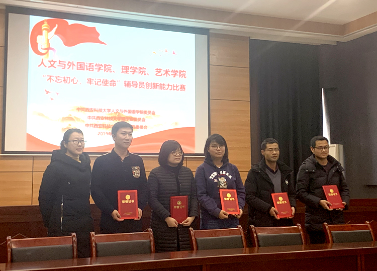 为全面贯彻落实“不忘初心、牢记使命”主题教育,进一步提高辅导员素质和能力,提升大学生思想政治教育质量,12月12日上午,人外学院、理学院、艺术学院在临潼校区秦汉校园联合举办了“不忘初心、牢记使命”辅导员创新能力比赛。校团委书记周涛,学工部副部长张颖,三学院党委书记孙颜红、费秀水、高朕栋及三学院党委副书记吕勤勇、张振中、高欣担任评委。