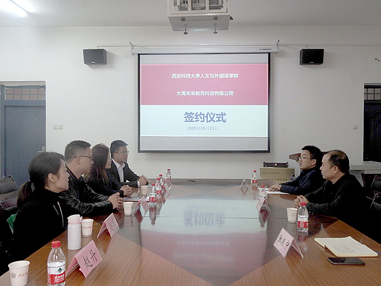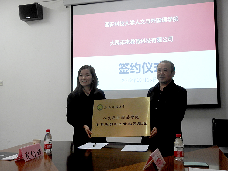 10月15日上午,开云官网开云kaiyun体育与北京大禹未来教育科技有限公司授牌签约仪式在学院会议室举行。北京大禹未来教育科技有限公司总监崔仿婷及陕西地区机构负责人,学院党委书记费秀水、院长师新民、党委副书记张振中及师生代表参加仪式。