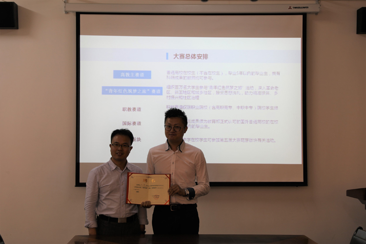 5月14日下午,人外学院在学院会议室举办“互联网+大学生创新创业”大赛备战系列工作坊讲座。陕西易途教育科技有限公司总经理,ETICE易途国际文化交流项目创始人朱文斌受邀担任主讲嘉宾,学院党委副书记张振中出席并代表学院为朱文斌颁发校外双创导师聘书。学院双创与竞赛教研室主任秦声主持,学院参赛学生代表参加讲座。