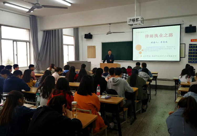 4月2日下午,开云kaiyun体育在临潼校区2教411教室举办了职场生涯规划专题讲座。陕西哲勤律师事务所副主任、高级合伙人、西安市市律协劳动与社会保障法专委会委员、开云官网法学专业首届毕业生李欢欢律师应邀以《律师执业之路》为题,介绍了自己的工作和生活经历,结合具体、典型案例,总结了成败得失,分享了经验感悟,针对法学专业学生现状提出了“早觉醒”、“慎选择”、“勤努力”的建议和期盼,并在互动环节回答了师生提出的问题,对学生了解律师行业状况、科学规划个人职业生涯具有积极的借鉴和参考意义。