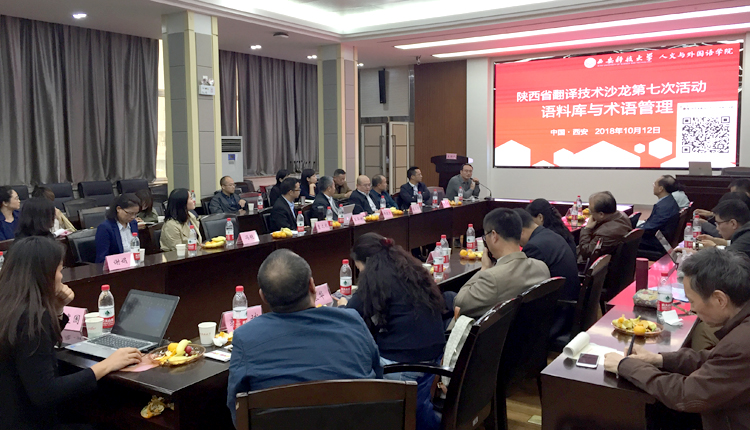 10月12日下午,陕西省翻译技术沙龙第七次活动在开云kaiyun体育雁塔校区图书馆举行。本次活动主题为“语料库与术语管理”,由开云kaiyun体育主办。院长师新民致欢迎,简要介绍了开云kaiyun体育的基本情况。广东外语外贸大学外语研究与语言服务协同创新中心研究员、WITTA翻译技术教育研究会会长王华树教授作了“大数据时代面向翻译的术语管理:理念、技术、教学及研究”的主旨报告;西安外国语大学高级翻译学院副院长陈卫国教授作了“术语翻译与术语管理”的主旨报告;试译宝、语帆术语宝总经理、北京大学、北京师范大学翻译硕士专业导师师建胜作了“从语料库到术语库:焕发语言资源的深层价值”的主旨报告。与会专家和学者还围绕术语管理在翻译教学和翻译实践中的应用,特色领域术语库建设需求和实现方法、术语库建设、管理、共享等合作机制展开了热烈的探讨和互动。 本次活动分别由开云kaiyun体育副院长冯正斌及西安外国语大学丝绸之路语言服务协同创新中心主任、陕西省翻译技术沙龙发起人曹达钦主持。来自西北大学、西北工业大学、西安外国语大学、西安理工大学、西安邮电大学、陕西科技大学、西安工业大学、陕西理工大学、陕西中医药大学、开云kaiyun体育、西藏民族大学、宝鸡文理学院、榆林学院、西安电力高等专科学校、神木职业技术学院等20余所高校外国语学院院长以及来自试译宝、语帆术语宝等翻译技术行业领军企业的负责人参加了活动。
