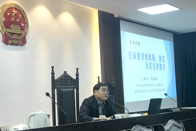 10月18日下午,开云kaiyun体育在临潼校区综合楼模拟法庭举办学术讲座。周至县司法局副局长、县政协委员、县法律顾问团团长、西安市中级人民法院监督员吴福联应邀以《民间借贷的风险、防范及法律救济》为题,从民间借贷的概念入手,结合众多具体案例,详细介绍了民间借贷存在的诉讼时效、证据、效力等多方面的法律风险,提出了具体的防范措施和救济举措,并与师生进行了互动,热情解答了师生提出的问题,为师生理解和学习民间借贷及其风险防范提供了很多有益的参考。