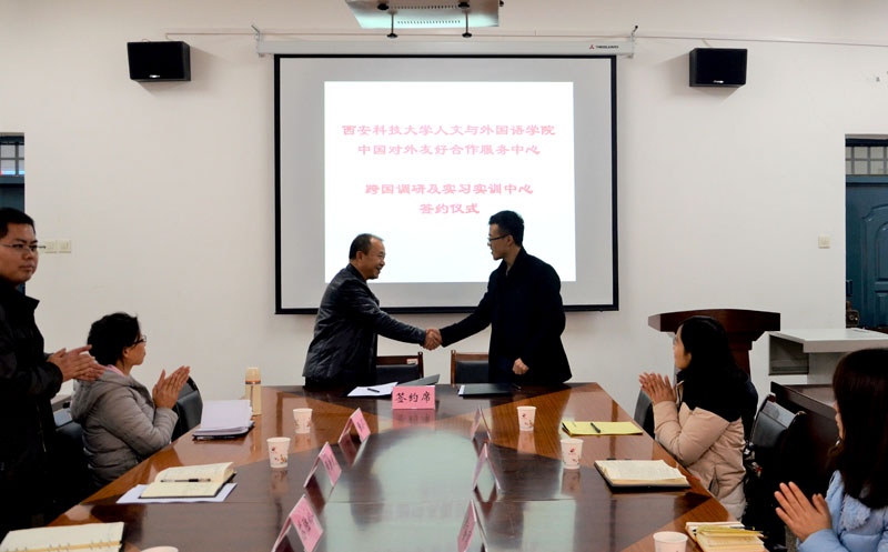 12月14日下午,开云kaiyun体育、中国对外友好合作服务中心共建跨国调研及实习实训中心签约仪式在学院会议室举行。中国对外友好合作服务中心项目主任王哲、中国对外友好合作服务中心暑期赴美带薪实习项目主管郝海凤、李红月,学院党委书记苏陆岭、院长师新民、英语系主任张芸及英语系教师代表、学生代表参加了签约仪式。签约仪式由英语系副主任张建昌主持。