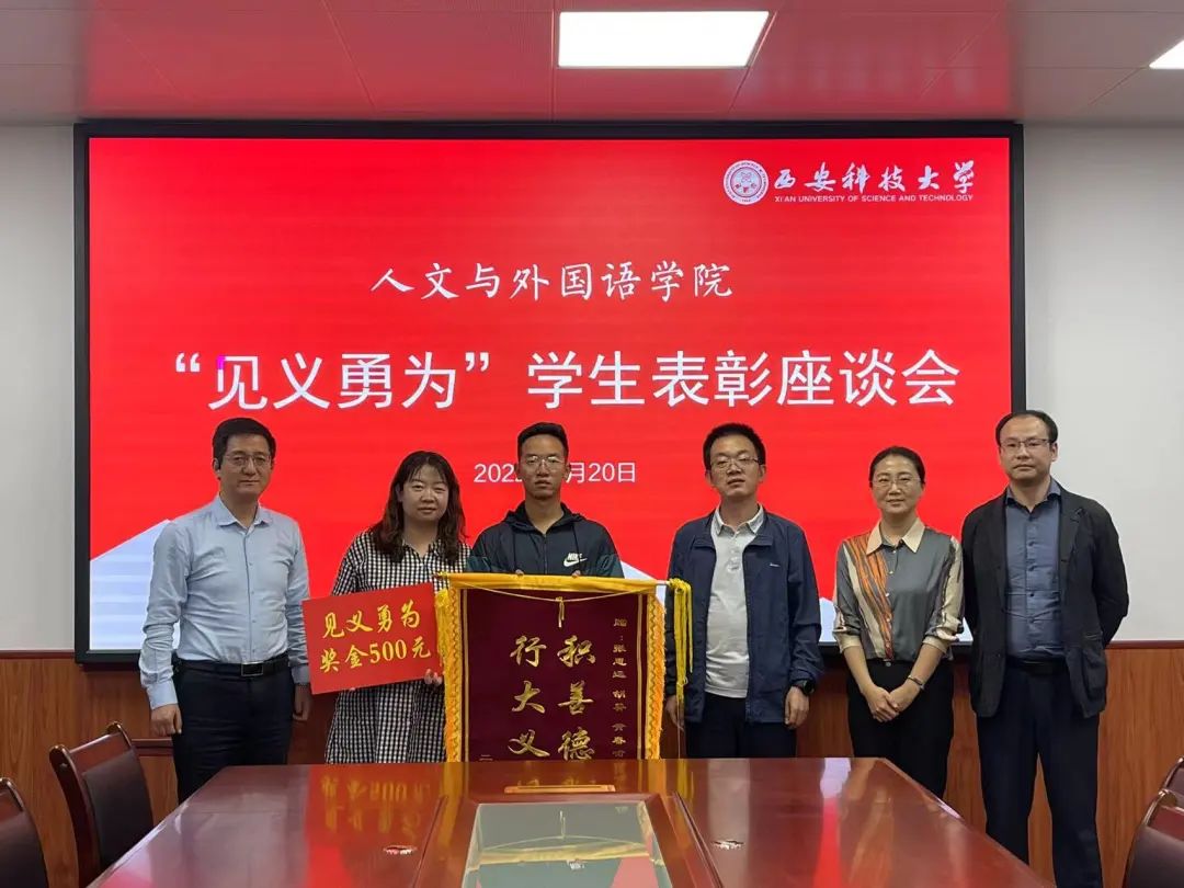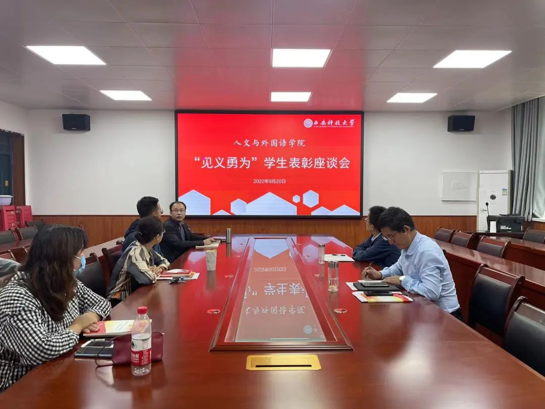 9月20日,开云kaiyun体育“见义勇为”学生表彰座谈会在临潼校区骊山校园二号教学楼226会议室召开。学院全体党政班子成员,学工办主任,团委书记和“见义勇为”学生张思远参加会议。