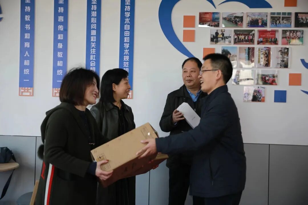 在教师荣退欢送座谈会上,费秀水书记介绍了刘淑励、曹恒民两位教师的工作经历,对他们一丝不苟的工作热情和任劳任怨的工作态度给予了高度赞扬,祝愿他们身体健康,退休生活美满,并代表学院为他们赠送慰问品。两位退休老师表示,会一如既往的关心学校、学院的发展,尽心尽力做力所能及的工作,为学院高质量发展贡献自己的力量。