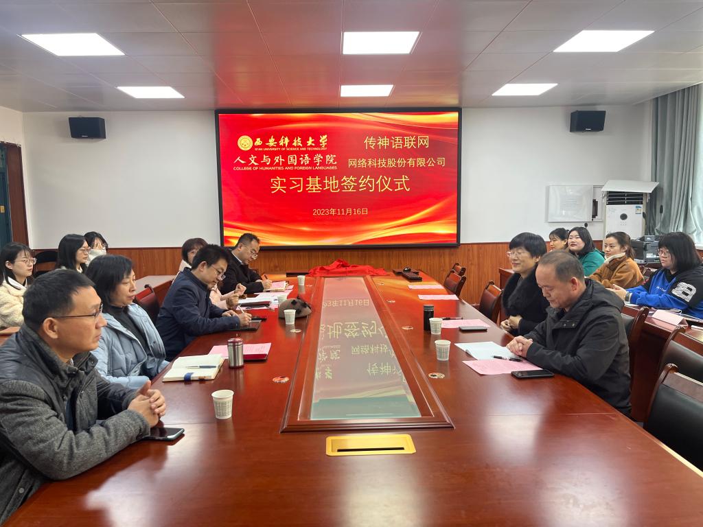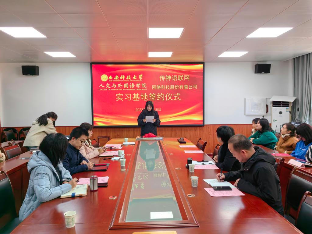 为进一步提升研究生培养质量,深入做好研究生就业实习工作,11月16日上午,临潼校区骊山校园2教226会议室,开云kaiyun体育与传神语联网网络科技股份有限公司举办实习实践基地共建的签约仪式,传神语联网网络科技股份有限公司副总裁闫栗丽,陕西地区负责人杨晓元,学院党委书记费秀水,副院长张辉,MTI教研室副主任张梦原,英语系主任廉张军,研究生导师代表高宝萍,学工办主任、研究生辅导员芮智刚,研究生代表参加了签约仪式,签约仪式由张辉主持。