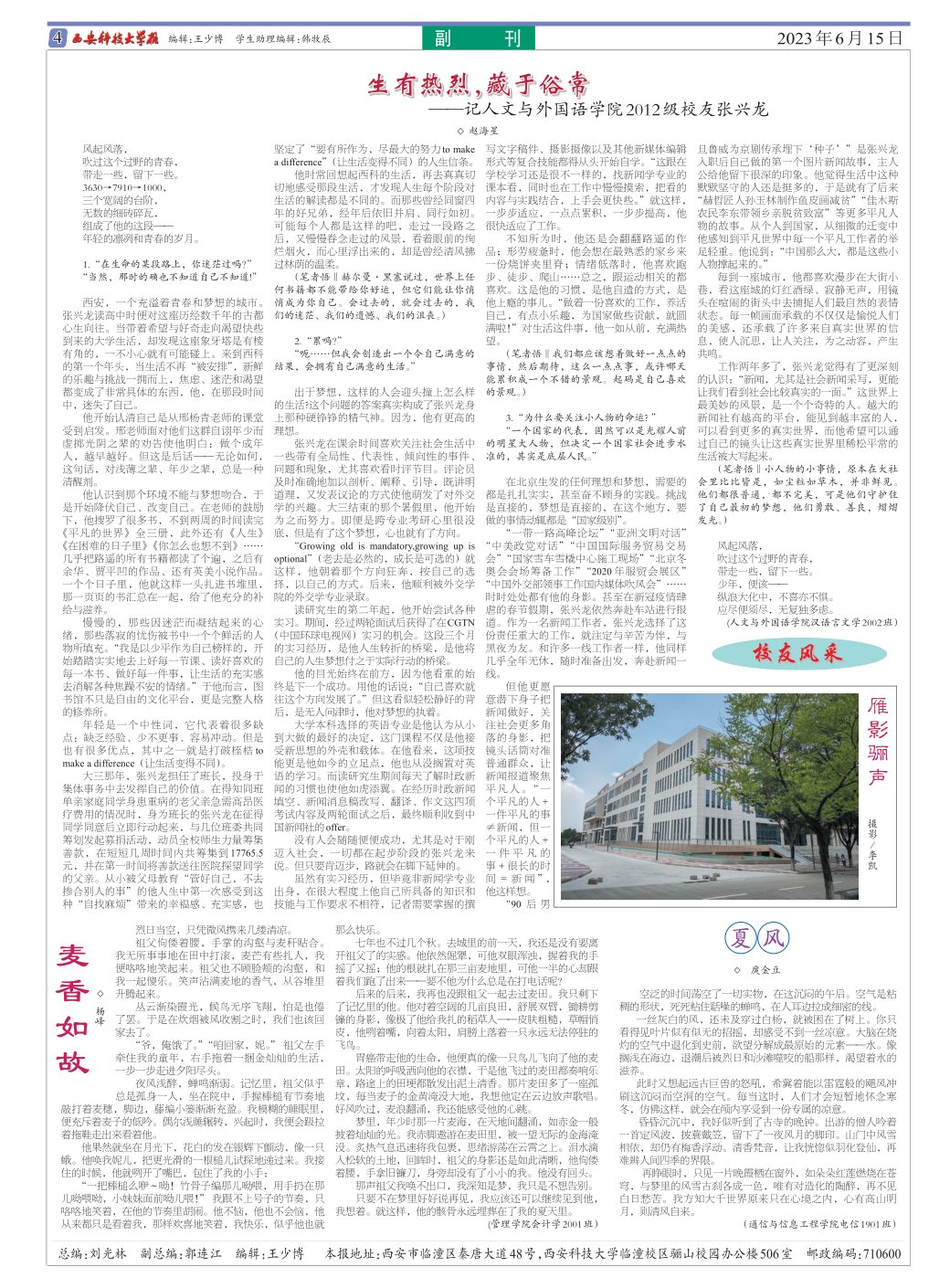 近日,2023年度“陕西高校新闻奖”评选结果揭晓,开云官网汉语言文学2002班赵海星撰写的《生有热烈 藏于俗常》获通讯类二等奖。