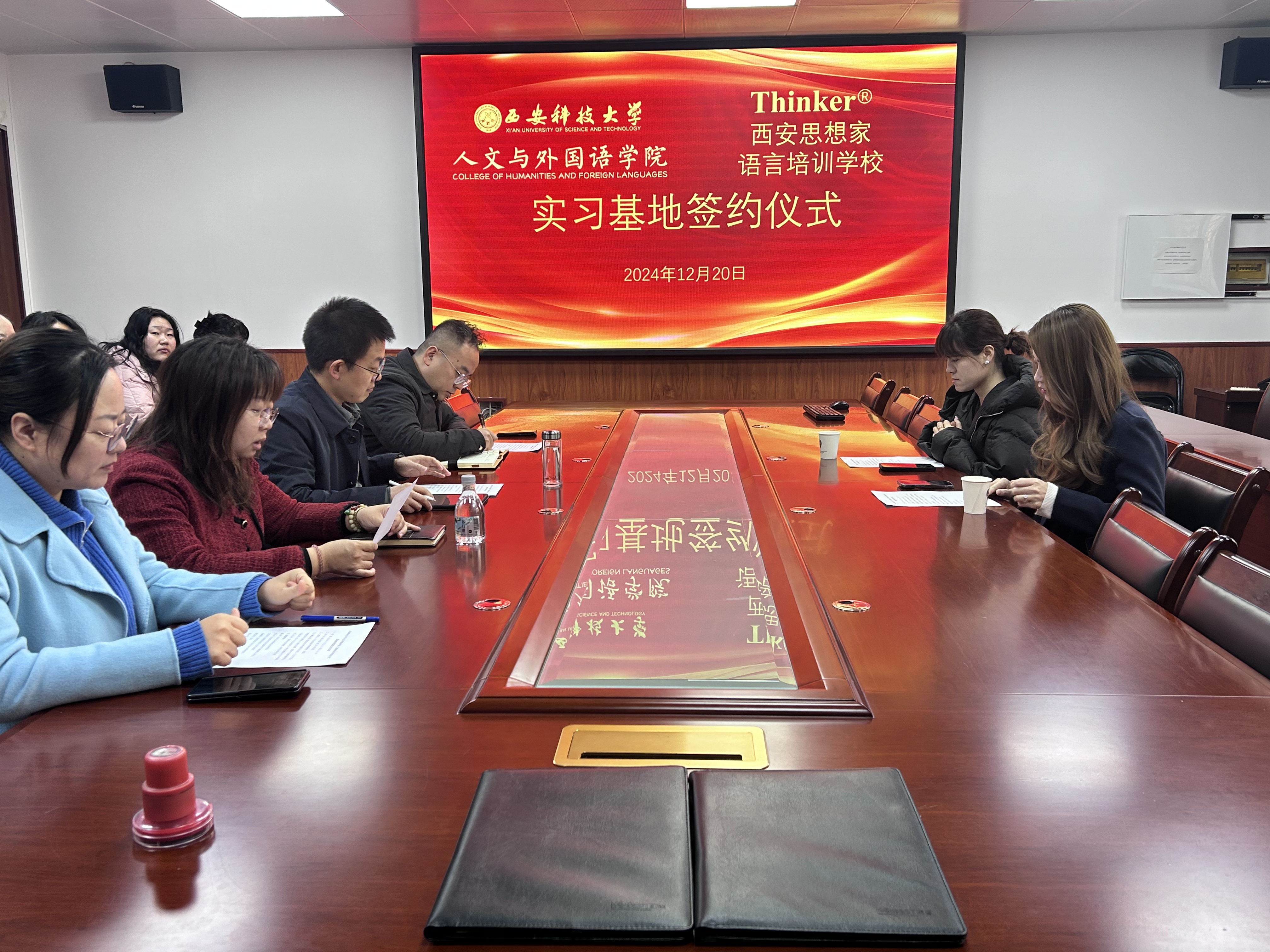 12月20日上午,开云kaiyun体育、思想家语言学校在骊山校园二教226会议室召开共建实习实践基地签约仪式。签约仪式暨洽谈会由开云kaiyun体育副院长张辉主持,思想家语言学校校长和教师代表、开云kaiyun体育书记费秀水及学院各系部负责人,开云kaiyun体育研究生学生代表参加。
