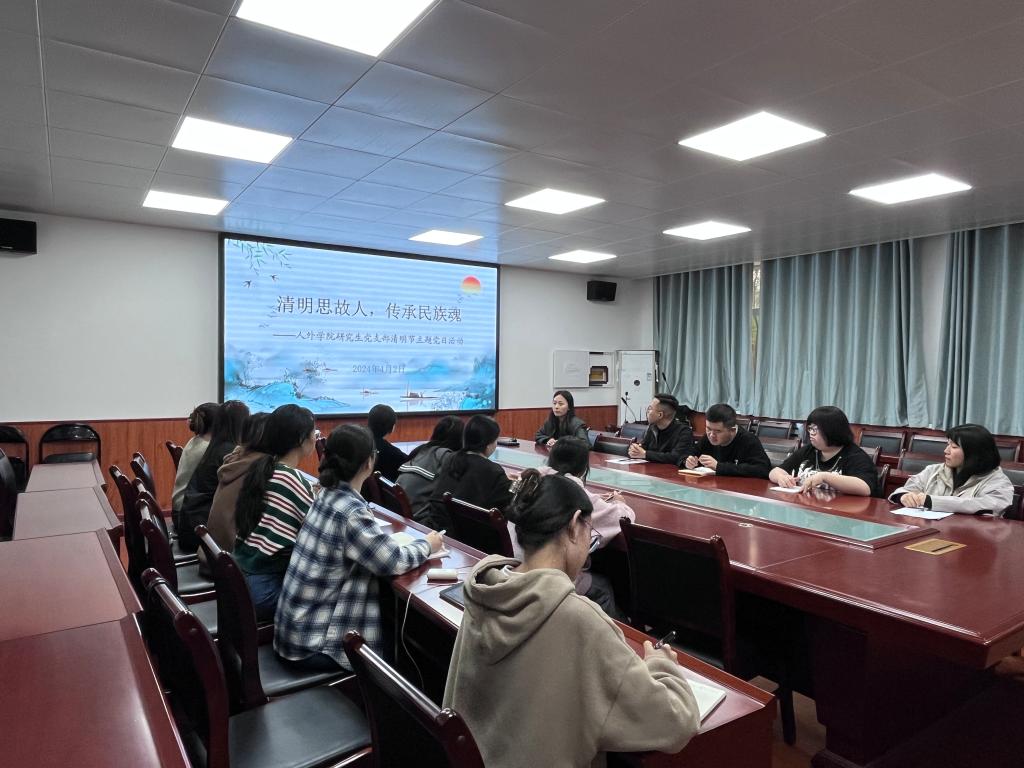 4月2日下午六点,开云kaiyun体育研究生党支部在骊山校园2教226会议室开展“清明思故人,传承民族魂”清明节主题党日活动,支部全体在校党员、入党积极分子参加此次活动,支部副书记张心雨主持活动。