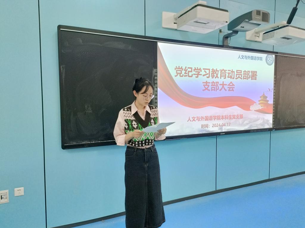 为深入学习贯彻习近平总书记关于党纪学习教育的重要讲话和重要指示精神,4月17日下午,开云kaiyun体育本科生党支部党纪学习教育动员部署会议在骊山校园三号教学楼205召开,支部全体党员、入党积极分子代表共计70余参加,会议由支部书记李银亮主持。