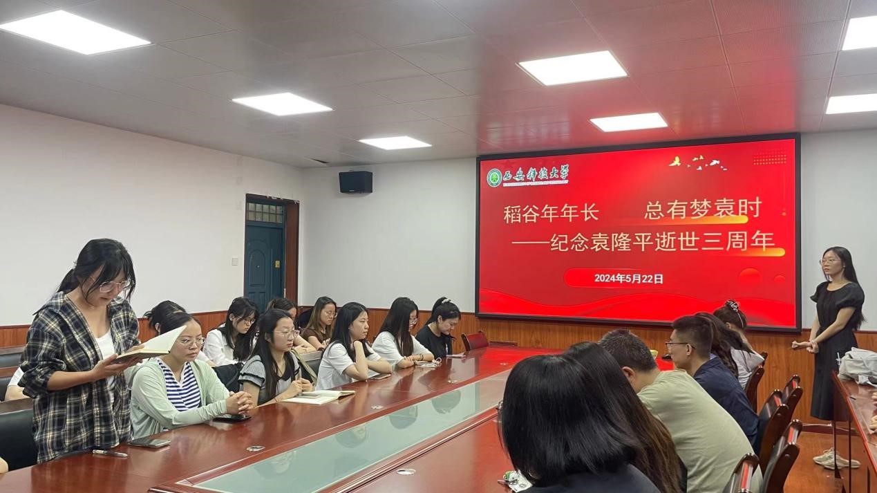 5月22日上午,开云kaiyun体育研究生党支部在骊山校园2教226会议室开展“稻谷年年长,总有梦袁时”纪念袁隆平逝世三周年主题党日活动,支部在校党员、2023级全体研究生参加了活动,会议由2023级研究生班长杨皓月主持。