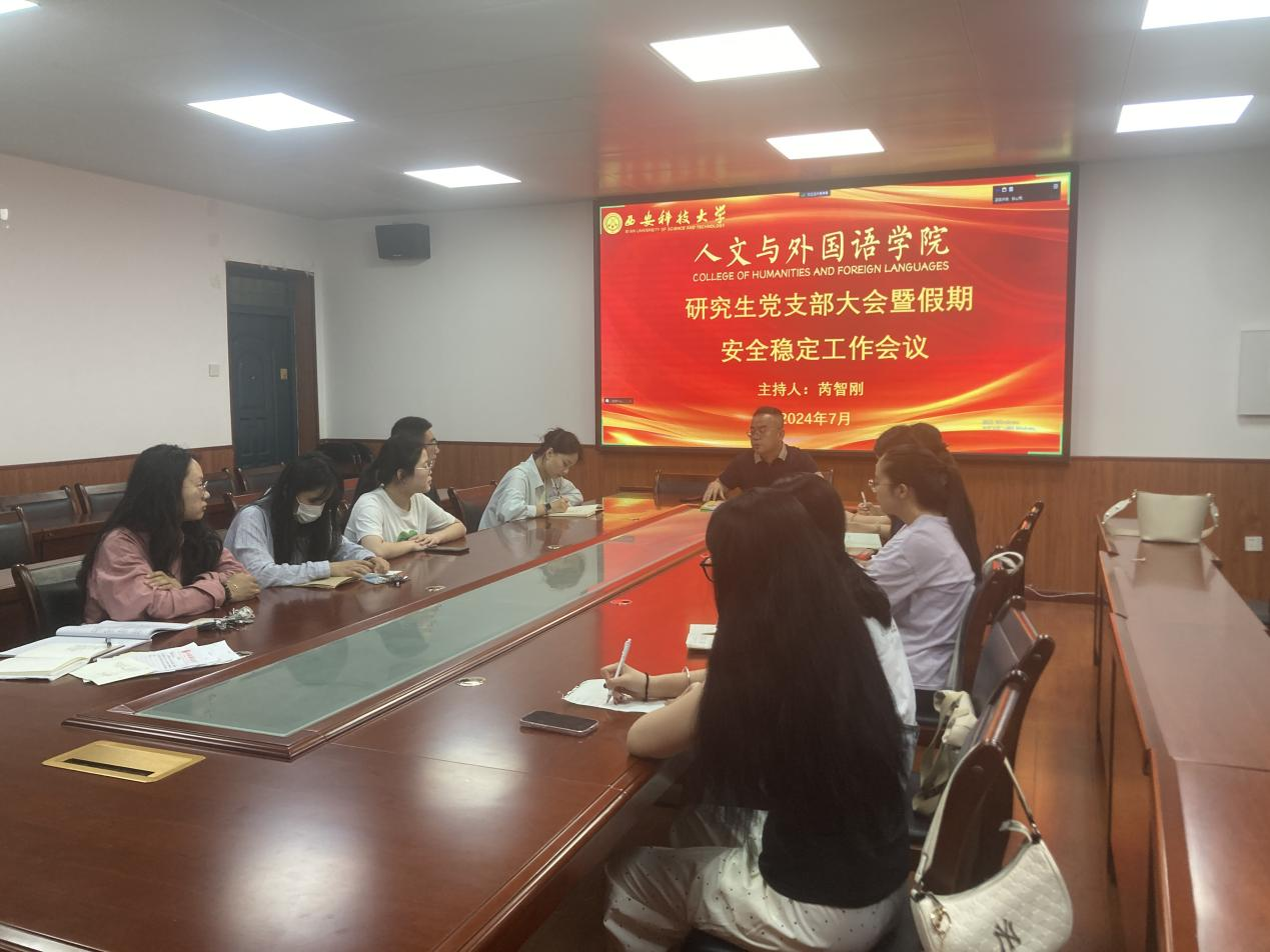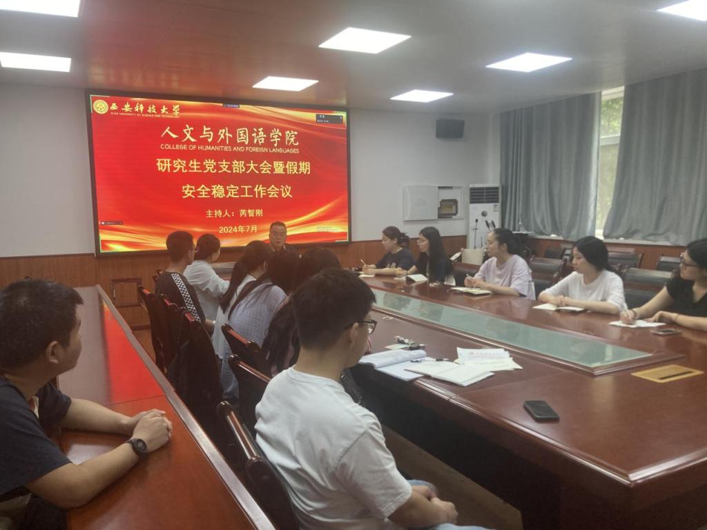 为做好研究生安全稳定工作,7月3日,开云kaiyun体育研究生党支部在临潼校区2教226会议室召开党支部大会暨假期安全稳定工作会议,会议以线上线下相结合的方式召开,全体研究生党员、2023级研究生参加了会议,会议由研究生辅导员芮智刚主持。