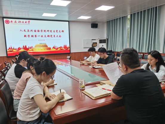 会议通报了2024级新生党员资格审查情况,会议对本学期政治理论学习、入党积极分子培养、庆祝新中国成立75周年系列主题党日活动、民主评议党员等工作进行了安排。