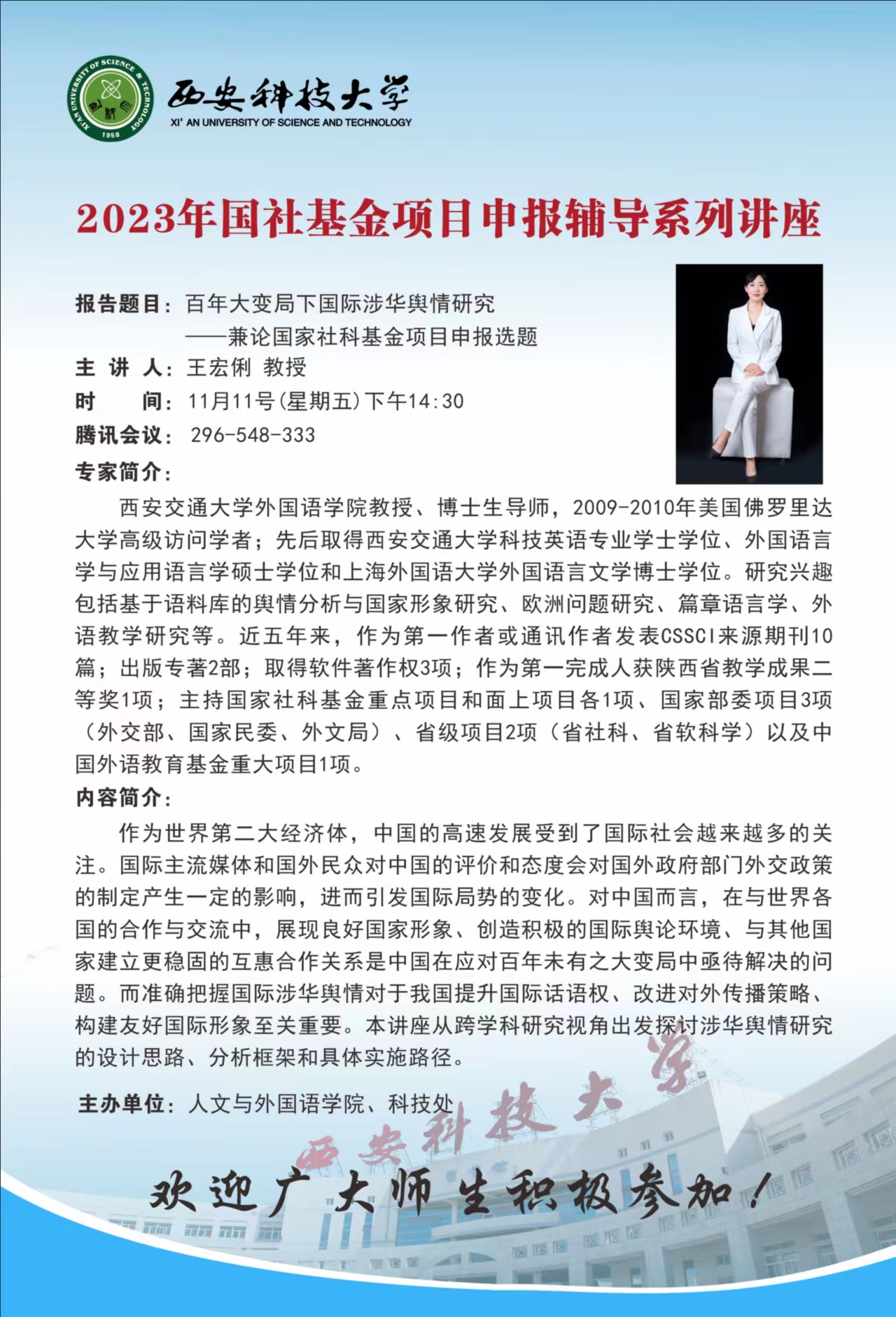 【学术讲座通知】2023年国社科基金项目申报辅导系列讲座