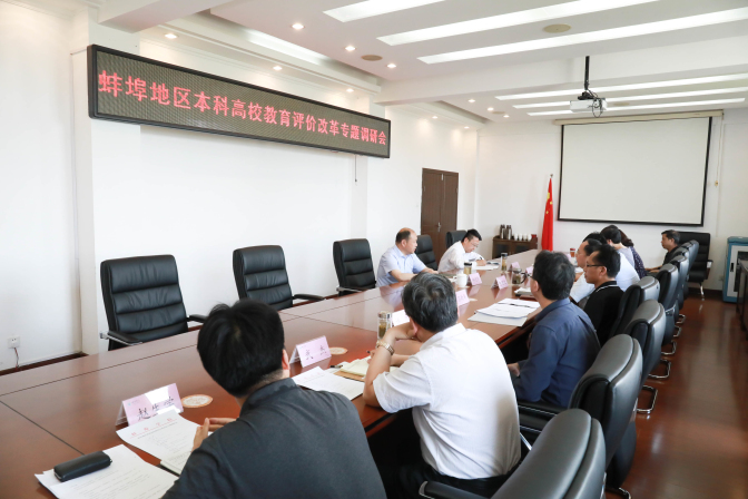 6月4日下午,蚌埠地区部分高校深化教育评价改革专题调研会在bat365官网在402会议室召开。省教育厅政策法规处处长、一级调研员郑德新,四级调研员韩传宇一行来校调研指导。党委书记陈国龙出席座谈会并讲话,安徽财经大学发展规划处副处长张士杰、蚌埠医学院教务处副处长朱广萍,以及bat365在线中国官网登录入口教学质量监控办公室、人事处、教务处、科研处、学生处、外国语学院等相关部门负责人参加了调研座谈,座谈会由郑德新主持。