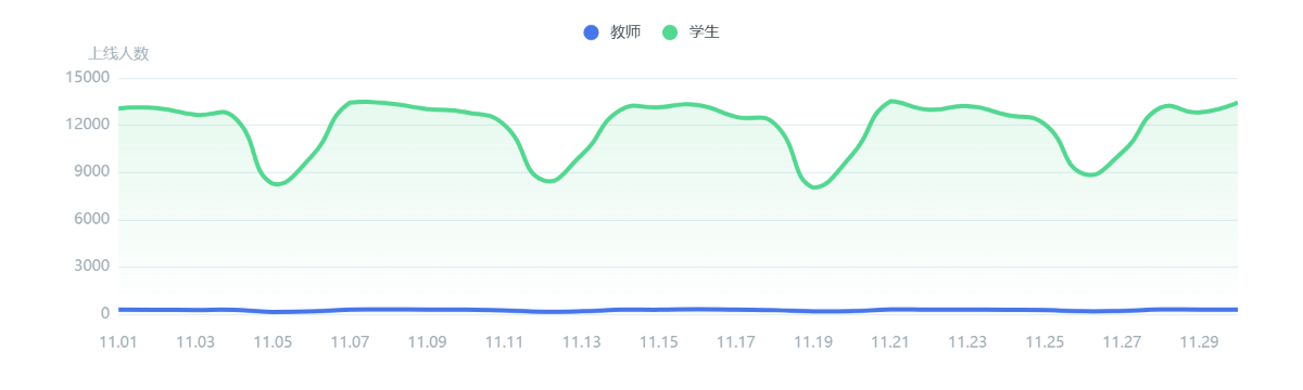 活跃课程(门) | 上线教师(人) | 上线学生(人) | 平台访问量(PV) | |