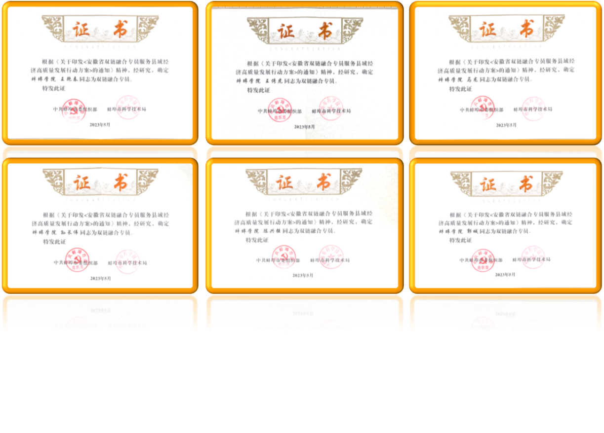 会议通报表扬了2022年度蚌埠市研发投入十佳单位、高新技术企业十强、专精特新企业20强,并为全市首批双链融合专员颁发了证书。经过学校组织申报和专家评审,bat365官网荣获2022年度蚌埠市研发投入十佳单位荣誉称号,bat365官网19名同志获批蚌埠市首批双链融合专员。