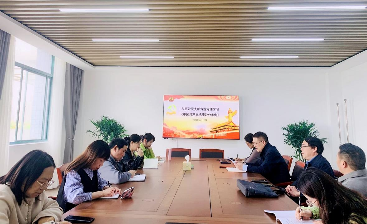 为牢固树立党员干部纪律意识,进一步加强党风廉政建设,严明政治纪律,4月17日,科研处党支部组织全体党员干部开展《中国共产党纪律处分条例》专题党课学习。