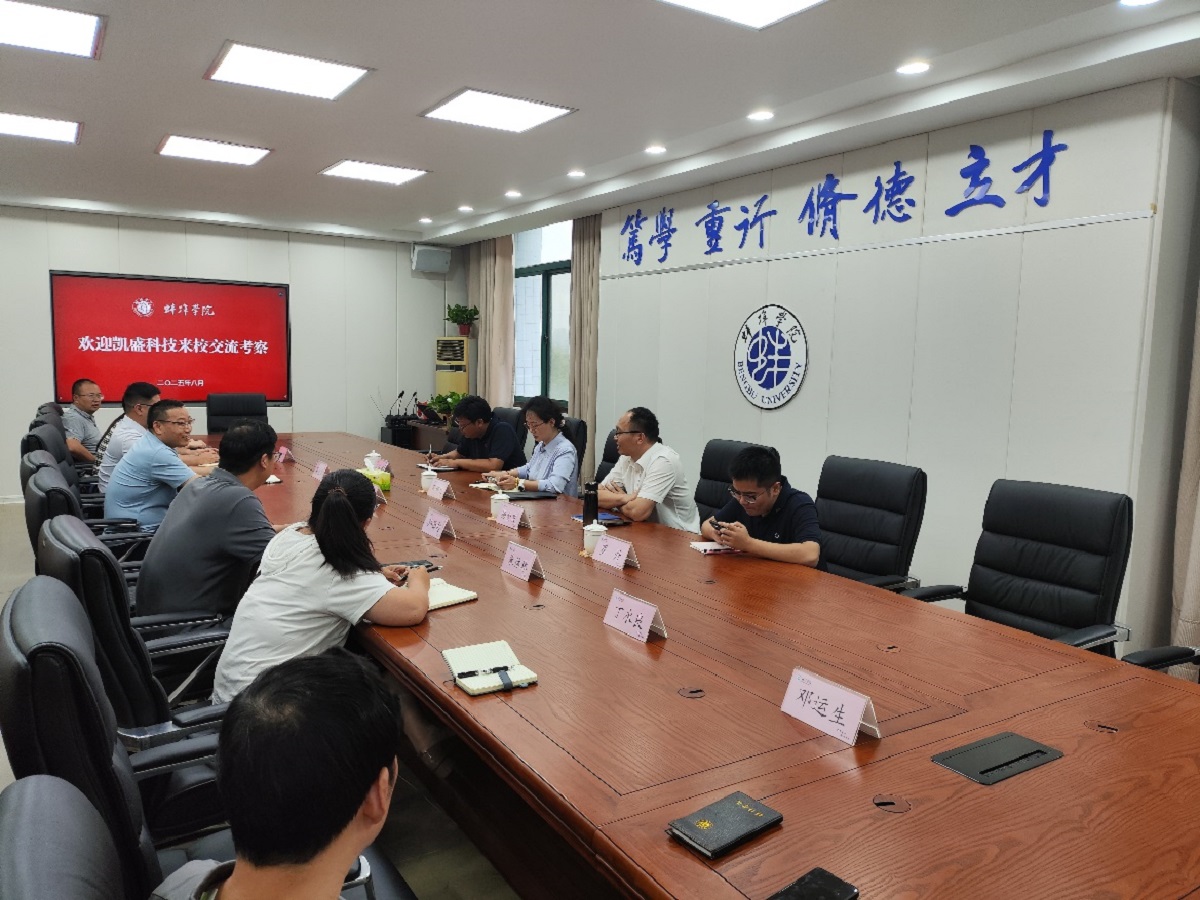 8月11日下午,凯盛科技集团有限公司柔性显示材料分公司总经理孙娜丽、副总经理杨金发等一行4人来bat365官网深化产学研合作。科研处处长孙西超主持会议,材料与化学工程学院院长葛金龙、相关博士和科研处同志参加会议。