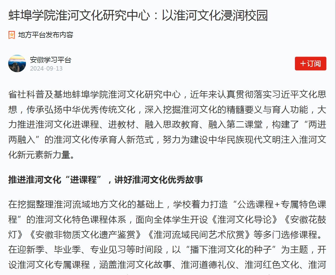 【学习强国】bat365在线中国官网登录入口淮河文化研究中心:以淮河文化浸润校园