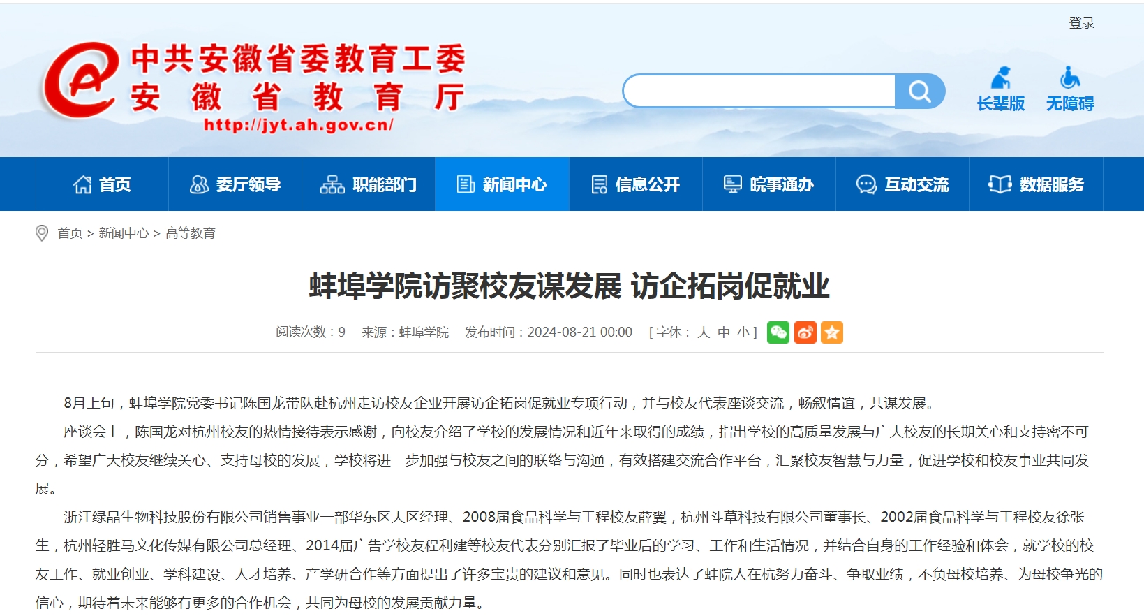 【安徽省教育厅】bat365在线中国官网登录入口访聚校友谋发展 访企拓岗促就业