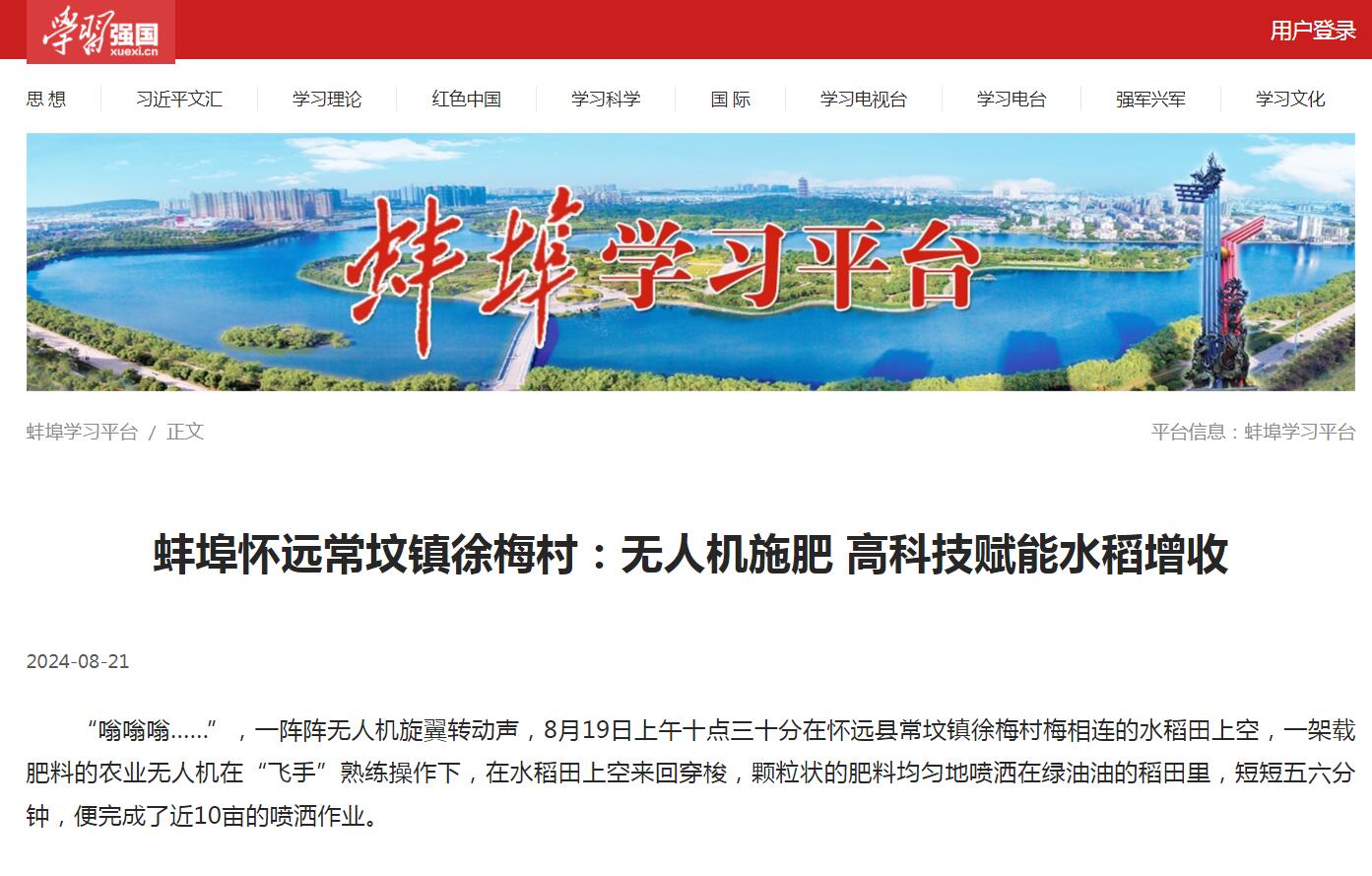 【学习强国】蚌埠怀远常坟镇徐梅村:无人机施肥 高科技赋能水稻增收
