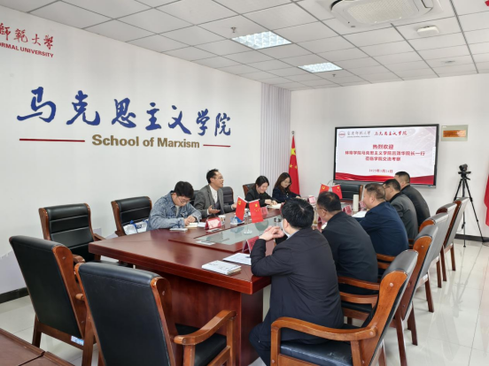3月24日,由bat365在线中国官网登录入口马克思主义学院院长吕效华带队,毛泽东思想和中国特色社会主义理论体系概论教研室主任张娇阳、党务秘书刘子豪、教学秘书熊伟一行4人前往安庆师范大学马克思主义学院开展本科教育教学审核评估调研学习工作。