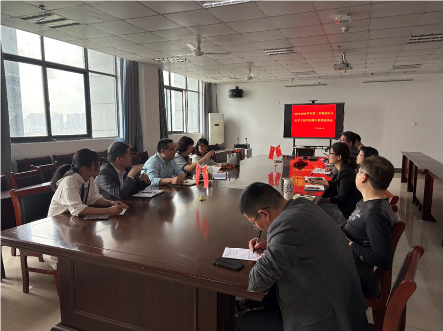 2025年4月24日,材料与化学工程学院举办了期中教学检查教师、学生座谈会,学校教学督导黄世瑜出席座谈会,学院党委书记张敏、院长葛金龙、党委副书记朱银邦和各专业教师代表、学生代表参加座谈会,会议由葛金龙主持。