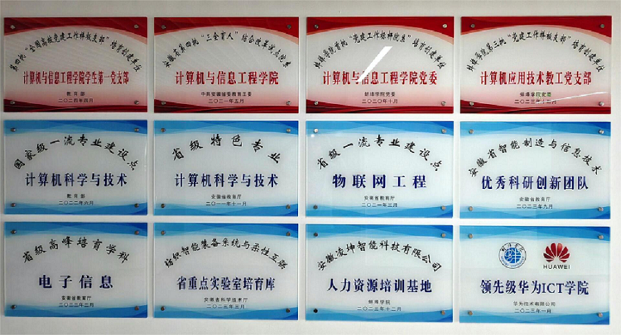 计算机与信息工程学院始建于1992年,现有全日制在校学生2094人,设有计算机科学与技术、软件工程、物联网工程、数据科学与大数据技术、人工智能、网络空间安全、网络工程(2025年停招)等七个本科专业。其中,计算机科学与技术专业为国家级一流专业建设点和安徽省特色专业,并入选安徽省“双特色”建设项目;物联网工程专业为安徽省一流专业建设点;拥有国家级一流课程1门。三十余年来,学院坚守为党育人、为国育才初心使命,始终秉承“笃学 重行 修德 立才”的校训精神,构建知识、能力、素质三位一体培养体系,夯实学科专业知识,提升工程实践能力,强化社会责任教育,为社会培养和输送了近万名创新型应用型IT人才。