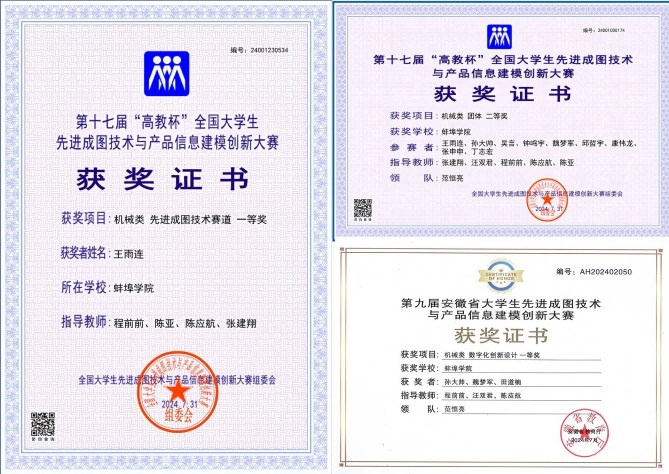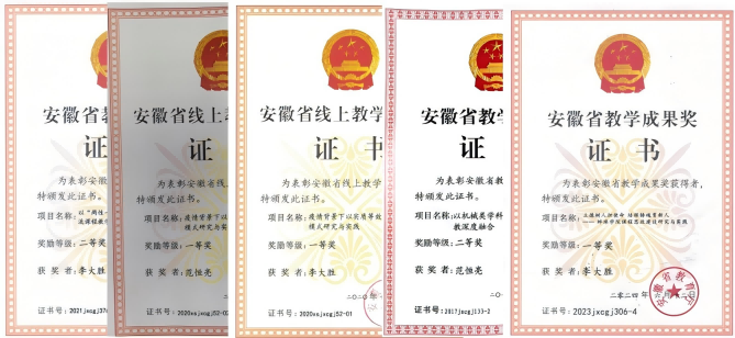 以创新人才培养机制为重点,打造“创新意识-创新能力-创业素质”递进式创新创业培养体系。结合专业优势,坚持“课程、训练、实践、服务”四位一体的育人模式,培育“成长型、阶梯型、服务型”科创实践团队。通过引入创新创业导师持续指导,不断加强学生“双创”意识和能力的培养,进一步以赛促学、以赛促教、以赛促改。近年来,本科生考取中国科技大学、合肥工业大学、苏州大学、上海大学等名校硕士研究生人数呈逐年递增态势。近年来,获批国家级大学生创新创业训练计划项目16项、省级60项;学生在“高教杯”全国大学生先进成图技术与产品信息建模创新大赛、“挑战杯”全国大学生创新设计大赛、全国周培源大学生力学竞赛、全国大学生金相技能大赛、机械创新设计大赛、安徽省大学生先进成图技术与产品信息建模创新大赛等各类竞赛中获省级及以上奖项50项。学生获得国家奖学金7人次,国家励志奖学金113人次,校优秀奖学金774人次,省优秀毕业生31人,校优秀毕业生103人。